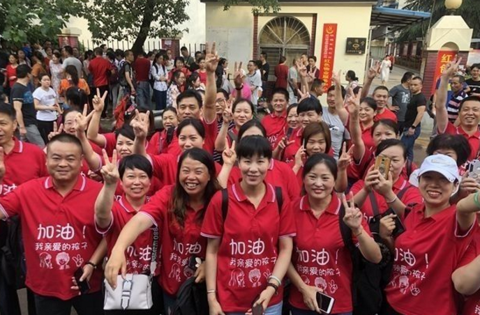 長江日報融媒體6月20日訊(記者楊幸慈)6月20日早上8點,德才中學考點門口前,二橋中學九(7)班家長統一著裝,身前印著“加油!我親愛的孩子”,身后為“miracle7”(奇跡7),用特殊的方式給孩子加油鼓勁。